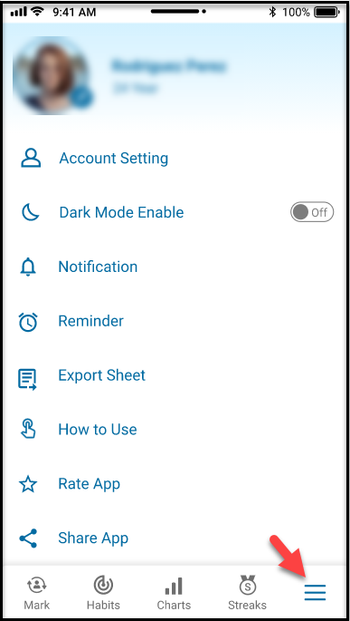 • Export Attendance Sheet- Export your daily, weekly, monthly, or yearly report sheet by clicking “Export Sheet.” Stay up-to-date with habit requirements by accessing past habit traits and receiving recommendations for upcoming set goals.